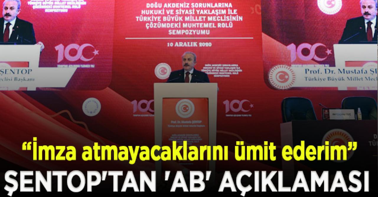 Meclis Başkanı Şentop, bugün toplanan Avrupa Birliği Liderler Zirvesi’nin gündeminin, Türkiye’nin Doğu Akdeniz’de yürüttüğü faaliyetler ile Türkiye’ye karşı alınacak önlemler olduğunu belirterek, "Yunanistan ve Güney Kıbrıs Yönetimi’nin kışkırtmalarıyla bölgesel meselelerde sınırlayıcı ve kısır bir yaklaşıma mahkum olmakla, Türkiye gibi Avrupa kıtasını Avrasya'ya dönüştüren büyük bir ufku ve geleceği dönüştürücü imkanlar arasında bir tercih yapmak zorunda Avrupa Birliği. İngiltere gibi, siyasi renk ve tesir unsuru bir ülkenin ayrılmasıyla ortaya çıkan bir kimlik bunalımını aşma mecburiyetiyle karşı karşıya olan Avrupa Birliği'nin Türkiye’ye yönelik tutumunun bir taraftan da kendi geleceğine dair temel tercihler bakımından da belirleyici olacağını akıldan çıkartmamak gerekmektedir. Türkiye ile Avrupa Birliği arasındaki güven bunalımının derinleşmesine katkı yapacak kararlara imza atmayacaklarını ümit ederim" dedi.