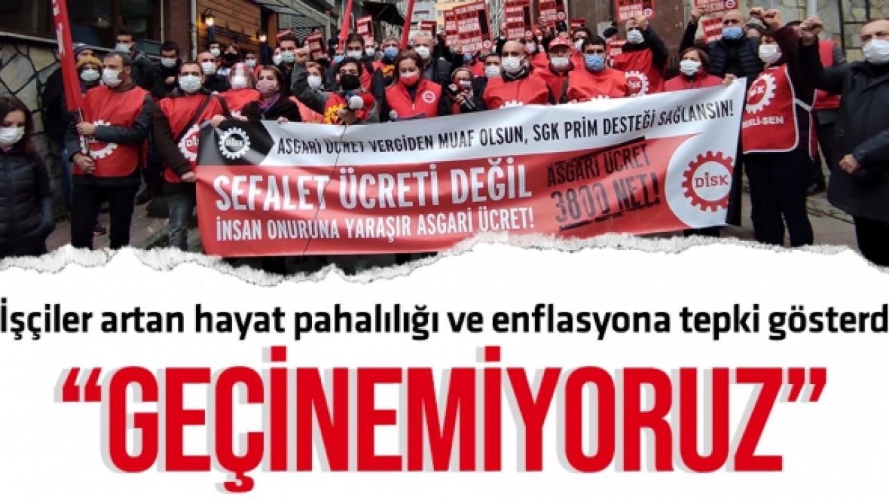İstanbul ve İzmir başta olmak üzere çeşitli şehirlerde basın açıklaması düzenleyen ve sosyal medyadan hükümete çağrı yapan işçiler; “Bizi enflasyona ezdirmeyin” dedi. Aldıkları maaşın çok düşük olduğunu ve açlık sınırının altında bir yaşama mahkum edildiklerini anlatan işçiler, “Gelirde ve vergide adalet sağlanmalıdır. Asgari ücret ve bütün ücretlerin asgari ücret kadarı için tüm vergi ve kesintiler sıfırlansın ve net ödensin. Böylece tüm ücretler yaklaşık 750 lira artırılsın. Asgari ücret sonrası ilk vergi dilimine uygulanan tarife oranı yüzde 20’den 10’a indirilsin. En düşük emekli aylığı asgari ücret düzeyine yükseltilsin. Tüm gıda ürünlerinde KDV sıfırlansın” talebinde bulundu.