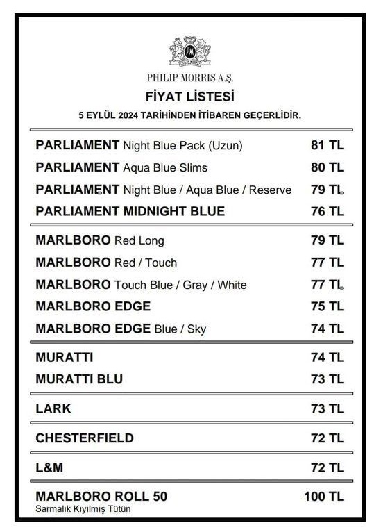 İşte Philip Morris grubuna ait zamlı fiyat listesi