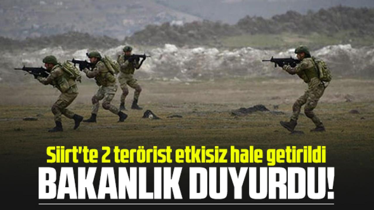 İçişleri Bakanlığı, Siirt'in Pervari ilçesinde çıkan çatışmada, 2 terör örgütü mensubunun etkisiz hale getirildiğini açıkladı.