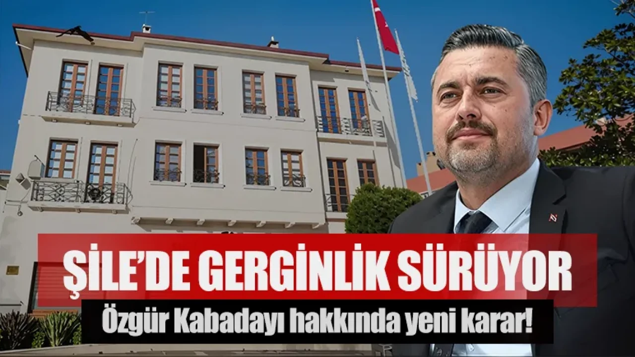 “Şile Belediye Başkanı Özgür Kabadayı hakkında, 'Suç İşlemek Amacıyla Kurulan Örgüte Üye Olma' ve 'Rüşvet Alma' suçlarından yürütülen soruşturma çerçevesinde, 14 Temmuz 2025 tarihli mahkeme kararıyla tutuklanması üzerine, Anayasa’nın 127’nci ve Belediye Kanunu’nun 47’nci maddeleri uyarınca geçici tedbir olarak görevden uzaklaştırılmıştır.”