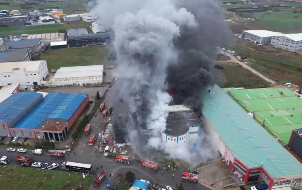 Zaman zaman yükselen patlama sesleri ve alevlerin fabrikanın çatısını sardığı anlar kameralara yansıdı. Havadan çekilen görüntüler, yangının boyutunu gözler önüne serdi.