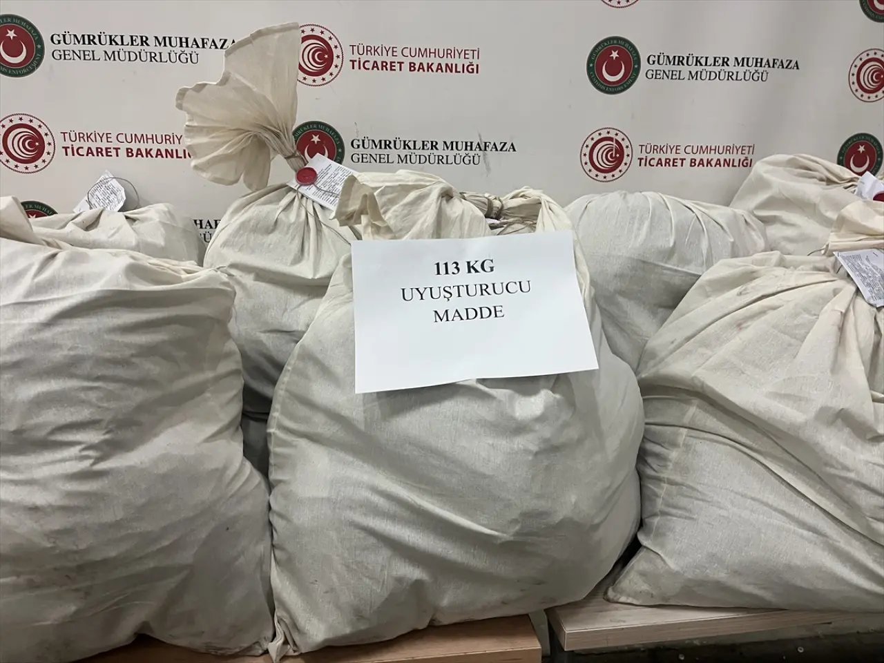 İncelemede, dorsenin güvenlik halatının kesik olduğu ve vidayla yeniden tutturulduğu fark edildi. Narkotik dedektör köpeği “Uzay”ın da katıldığı aramada, aracın gizli bölmelerine yerleştirilmiş 113 kilo 664 gram esrar bulundu.