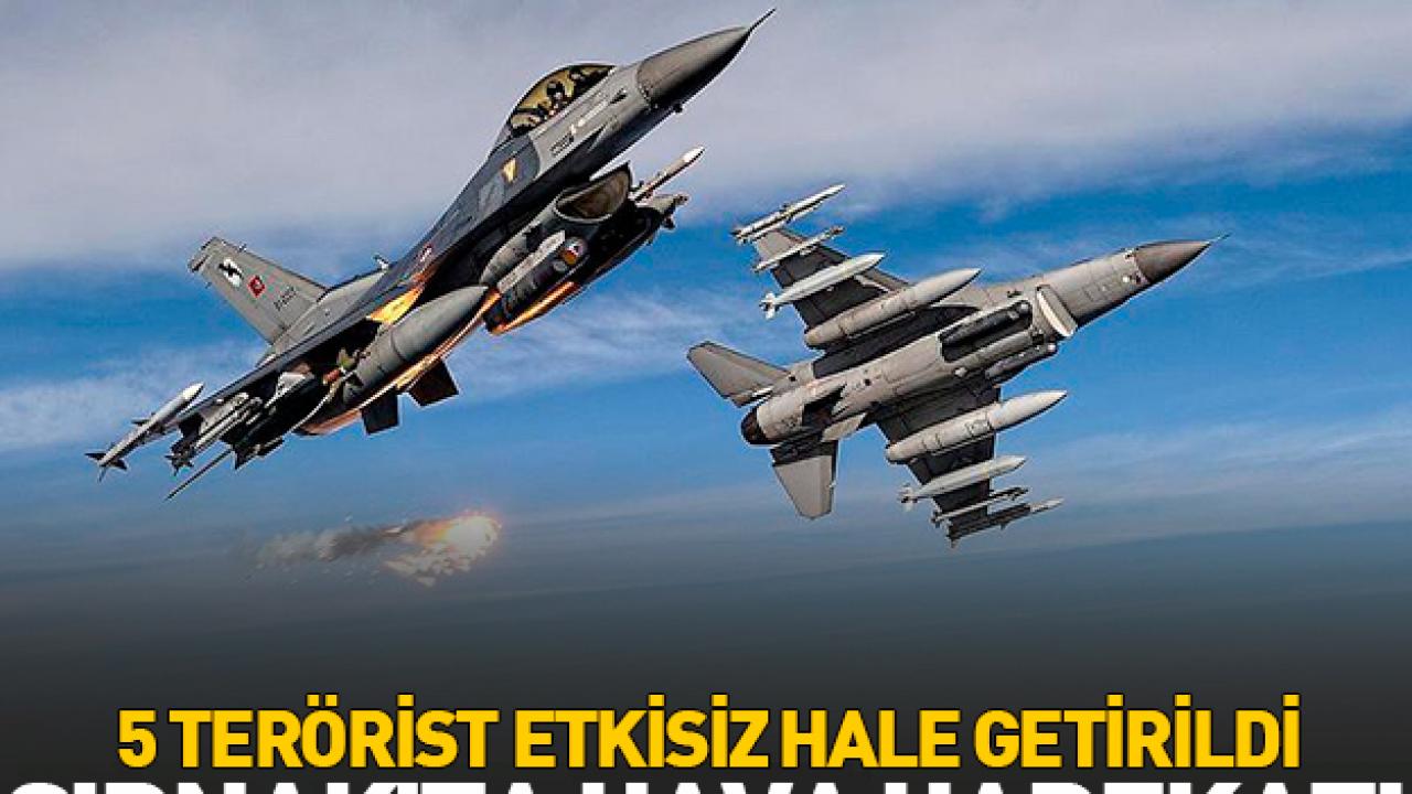 Bölgeye düzenlenen hava harekatında 5 teröristin silahlarıyla etkisiz hale getirildiği öğrenildi.