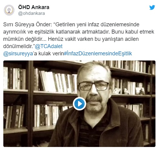 “Ülkemizdeki infaz hukuku baştan ayağı düşman hukuku anlayışıyla bezenmiş ve muhalifler söz konusu olduğunda zalimane uygulamalar bütünden ibaret bir şey olmuştur. Bugün bunun böyle olması yetmezmiş gibi getirilen yeni infaz düzenlemesinde bu ayrımcılık ve eşitsizlik katlanarak artmaktadır. Bunu kabul etmek mümkün değildir. Henüz vakit varken bu yanlıştan acilen dönülmelidir.”