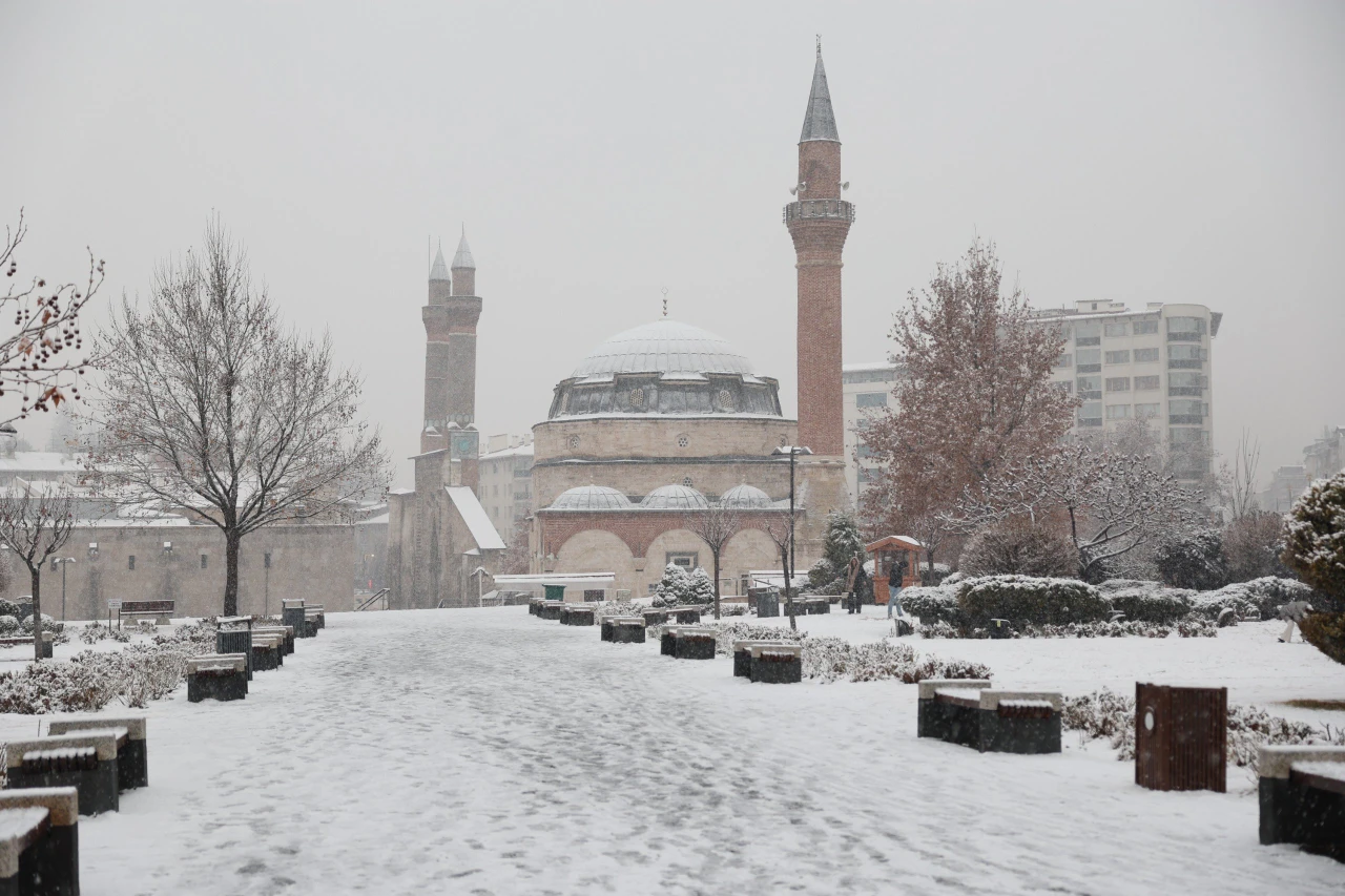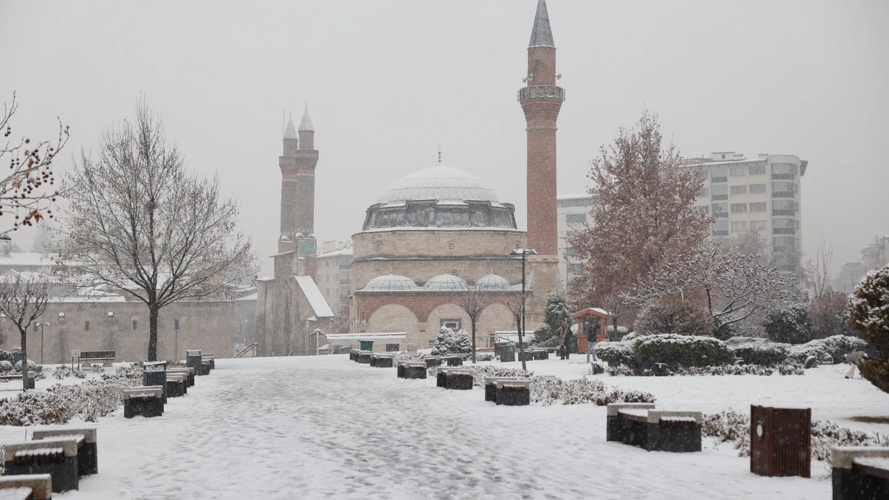 Sivas’ta etkili olan yoğun kar yağışı kısa sürede şehri beyaz bir örtüyle kapladı.