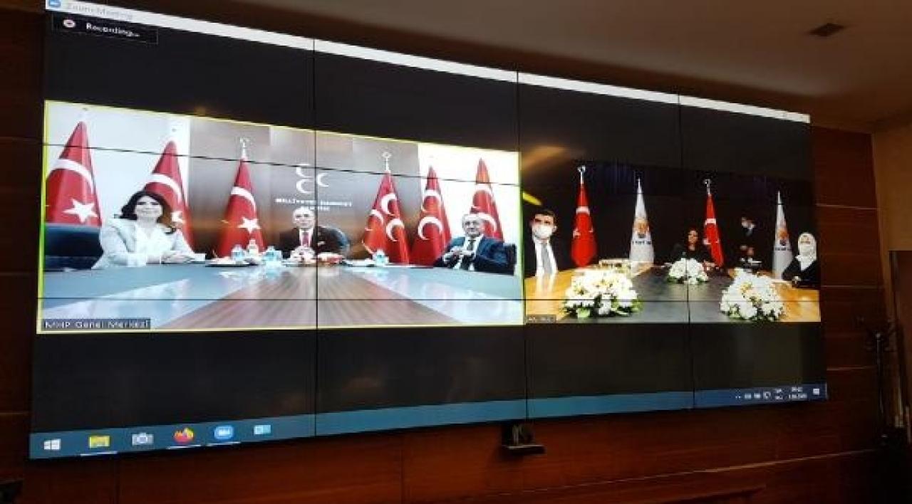 AK Parti Genel Merkezi'nde Genel Başkan Yardımcısı Jülide Sarıeroğlu, Genel Merkez Kadın Kolları MYK Üyesi Nihan Turna Sakaltaş ile Genel Merkez Gençlik Kolları MYK Üyesi Hasan Murat Öz'den oluşan heyet, ilk olarak CHP heyeti ile video konferans yöntemiyle bayramlaştı. CHP Parti Meclisi Üyeleri Lale Karabıyık, Deniz Demir, Pınar Uzun ile Ahmet Hakan Uyanık'ın bulunduğu heyet ile yapılan görüşmede Sarıeroğlu, "Allah, geleneksel hale gelen siyasi partiler arası bayramlaşmayı tekrardan yapmayı nasip etsin" dedi.