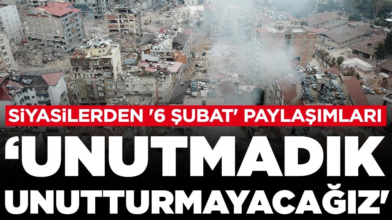 Kahramanmaraş merkezli 6 Şubat'taki depremlerin yıl dönümünde bakanlar ve siyasi parti liderleri, sosyal medya hesaplarından yaptıkları paylaşımlarla yaşamını yitirenleri andı.