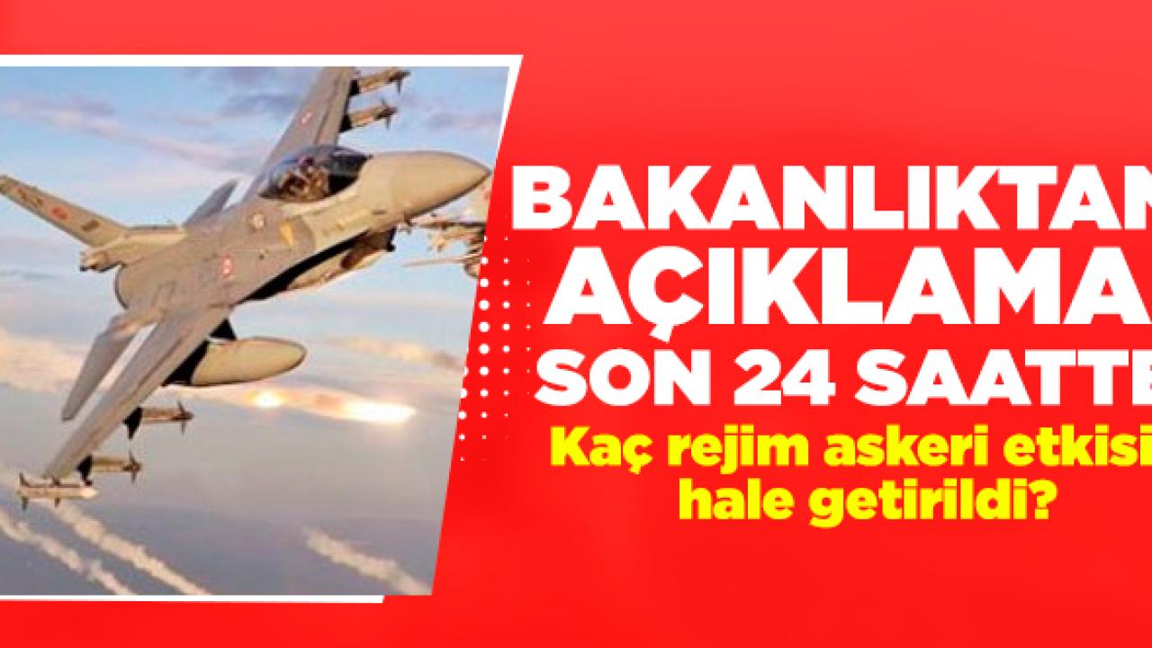 Milli Savunma Bakanlığı, Bahar Kalkanı Harekatı'nın gece boyunca başarılı şekilde sürdüğünü, son 24 saatte 184 rejim askerinin etkisiz hale getirildiğini açıkladı.