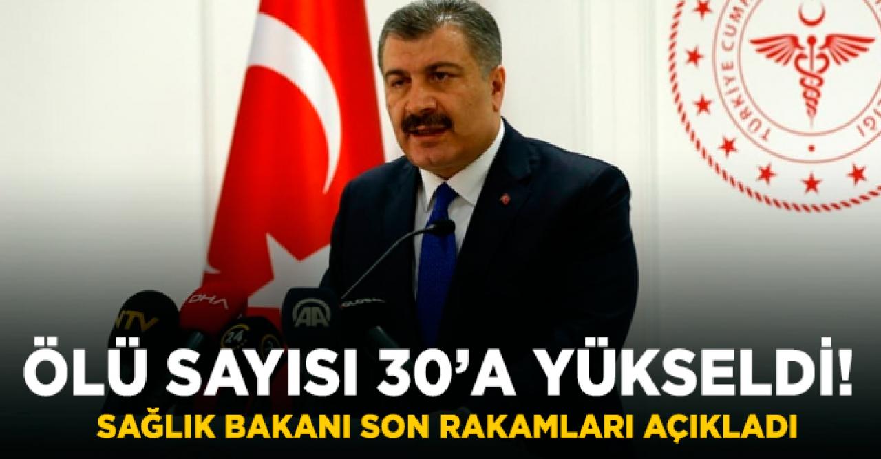 Koronavirüsü salgını nedeniyle ölü sayısının her geçen gün arttığı ülkemizde vaka sayısında da artışlar yaşanmaya devam ediyor. Sağlık Bakanı tarafından Twitter üzerinden yapılan son açıklamada bugün 9 kişinin öldüğü, toplamda hayatını kaybedenlerin sayısının 30'a ulaştığı ifade edildi.