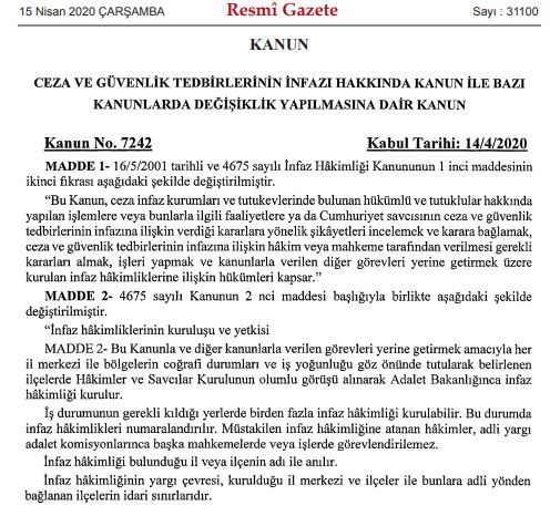 Yeni İnfaz Yasası Cumhurbaşkanı Erdoğan'ın onayının ardından Resmi Gazete'de yayımlandı...