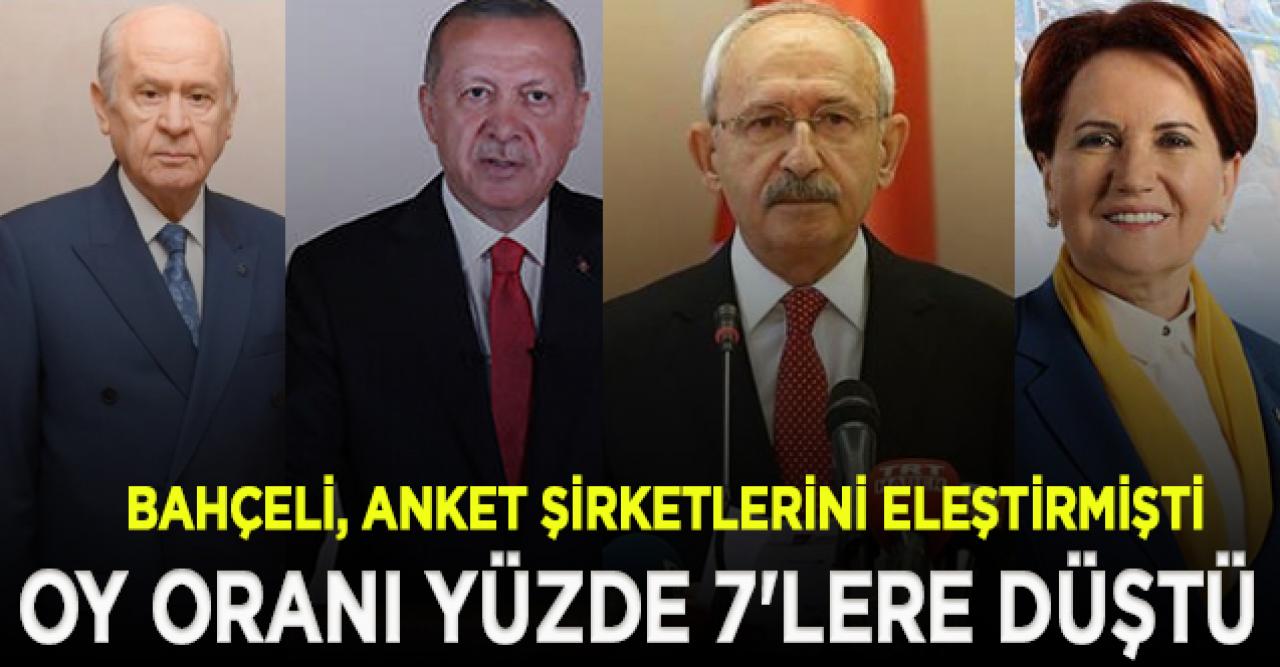 Daha önce MHP'nin oy oranını düşük göstererek algı oluşturulduğunu iddia eden Bahçeli, anket şirketlerini "şarlatan" olarak nitelendirmişti. Bununla da yetinmeyen MHP Lideri, "Oy oranımızı az göstermek için kudurmuş gibi çalışan kokuşmuşlar" ifadeleri ile anket şirketlerine olan tepkisini dile getirmişti.