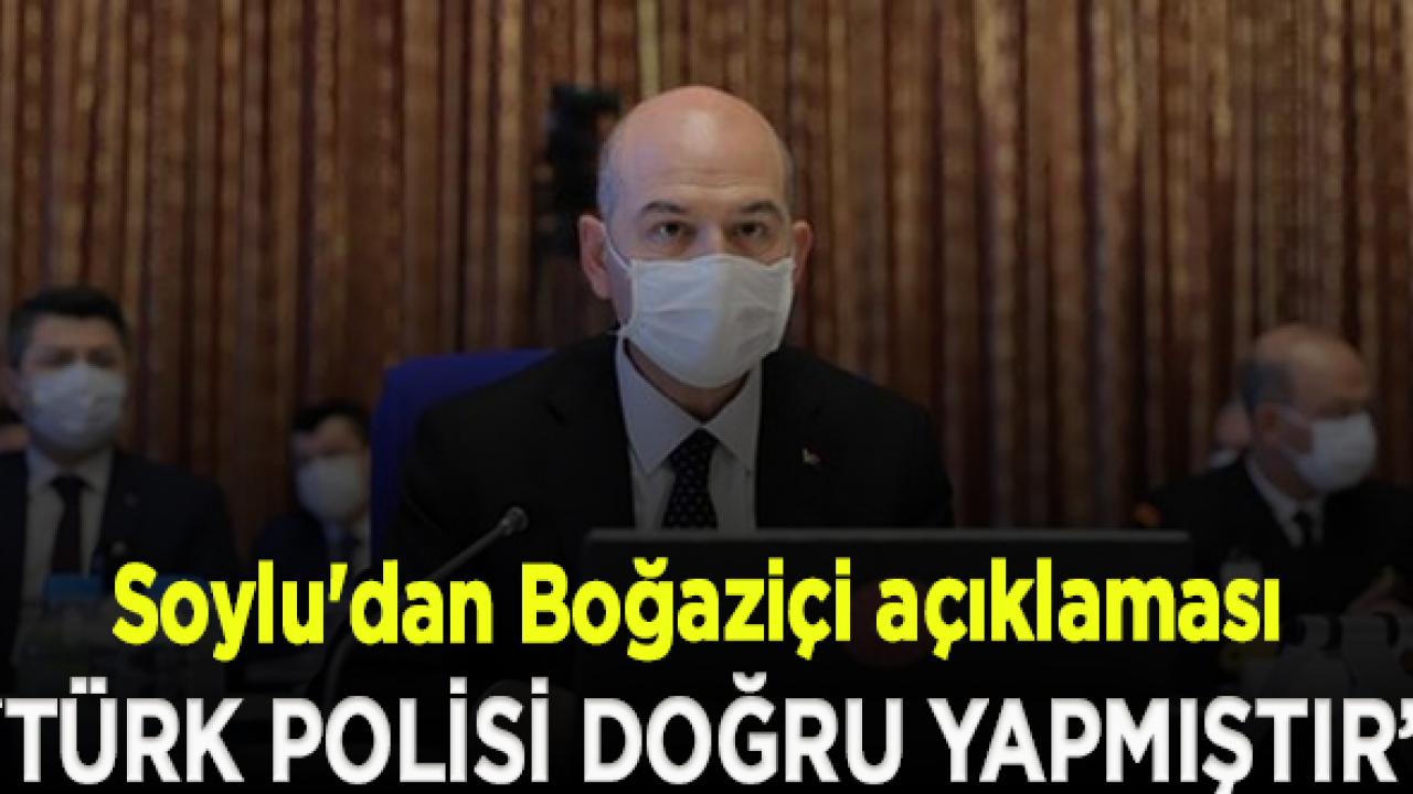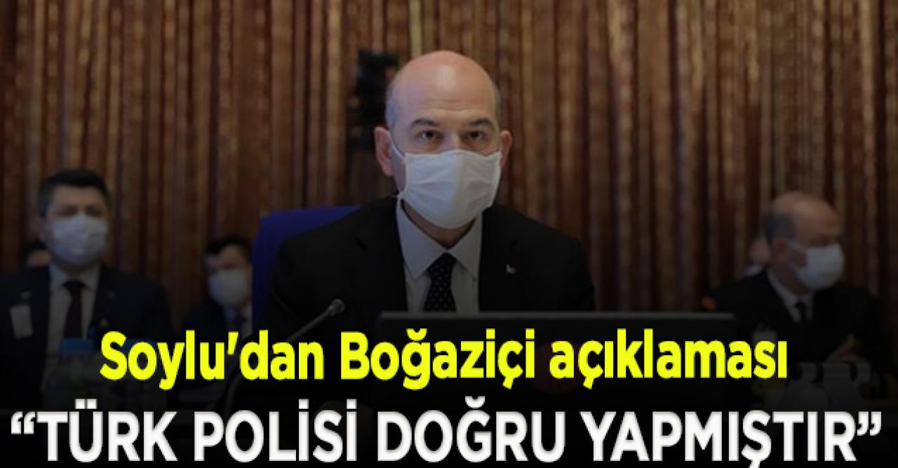 İçişleri Bakanı Süleyman Soylu, "Üniversiteye girmeye çalışan, Boğaziçili olmayan, terörle iltisaklı illegal gruplara, izin vermeyen Türk Polisi, doğru yapmıştır" dedi.