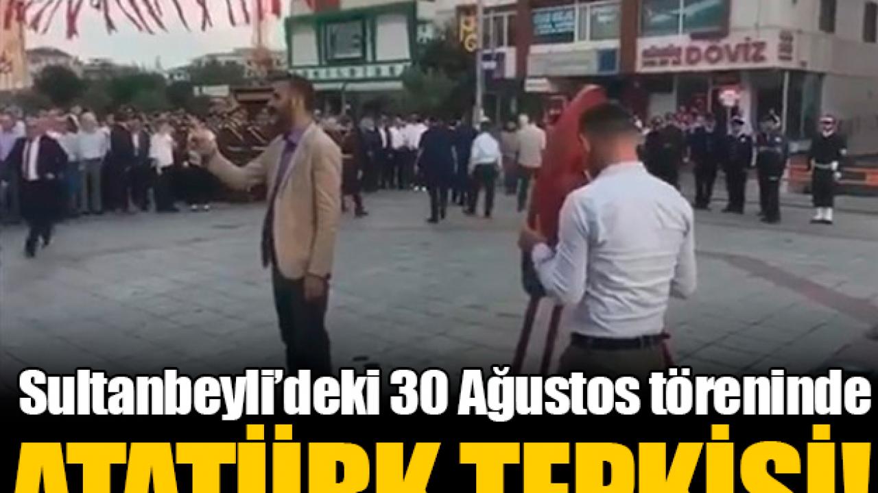 İlçe Kaymakamı Metin Kubilay ve Garnizon Komutanı’nın da bulunduğu törende çelenk sunumu yaparken yüksek sesle tepki gösteren CHP İlçe Başkanı Kantekin, “Bugün kutlanan Zafer Bayramı, Başkomutanlık Meydan Savaşı’nın zaferle kazanıldığı 30 Ağustos 1922’nin yıldönümüdür. Bu zaferi kazanan Başkomutan Atatürk’tür. Atatürk adı anılmadan bu tören kutlanamaz” dedi.