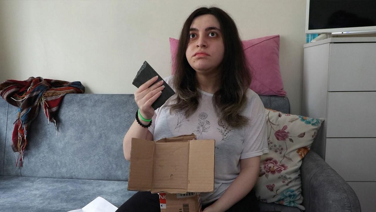 Bedensel engelli Sibel Zengin, “2 Şubat Cuma günü bir teknolojik mağazadan tablet satın alımı gerçekleştirdik. Cuma günü aldığımız için araya hafta sonu girdi. 5 Şubat'ta biz kargomuzu almak üzere; ben engelli olduğum için evden bizzat aile büyüğümden birini gönderdim. Onlar da gidip alıp getirdi. 'Hayırlı olsun' diyerek açmak istedi dayım. Açınca içinde kare şeklinde bir taş gördük. Kutusu da büyük bir şekildeydi. Hani biz bunun üzerine her yere bildirdik. Mağaza ve kargo şubesini aradık. Mağaza kendisi kabul etmedi bunu. Aldığım mağaza, 'Diğer satıcı mağazaya söyleyin' dediler. Biz de satıcı mağazayı aradık. Bayağı bir onlar ilgilendiler, baktılar, incelediler. Bir süre haber gelmedi zaten. Dediler, 'Kargoluktur sorun.' Biz kargonun genel müdürlüğünü aradık. Genel müdürü de bütün kayıtları, transfer sürecini, hepsini incelediğini beyan etti. 'Bu bizlik değil, satıcının suçu' dediler. Biz de satıcıya tekrar döndük. Aradık, satıcı da ‘Biz düzgün bir şekilde kargoladık’ dedi. 20 bin lira söz konusu ortada, iki tarafta suçu birbirine atıyor” dedi.