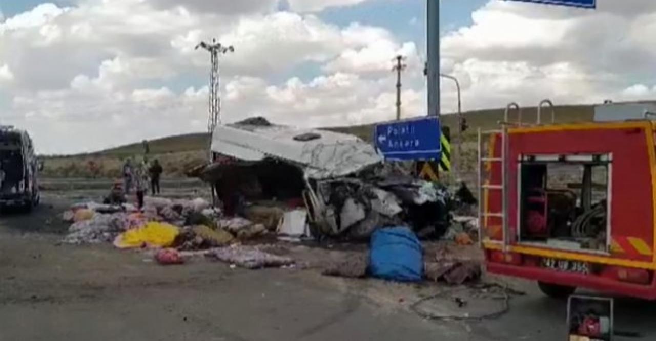 Kaza, Konya’nın Yunak ilçesinde bir kavşakta meydana geldi. Edinilen bilgiye göre, tarım işçilerini taşıyan minibüs ile TIR kavşakta çarpıştı.