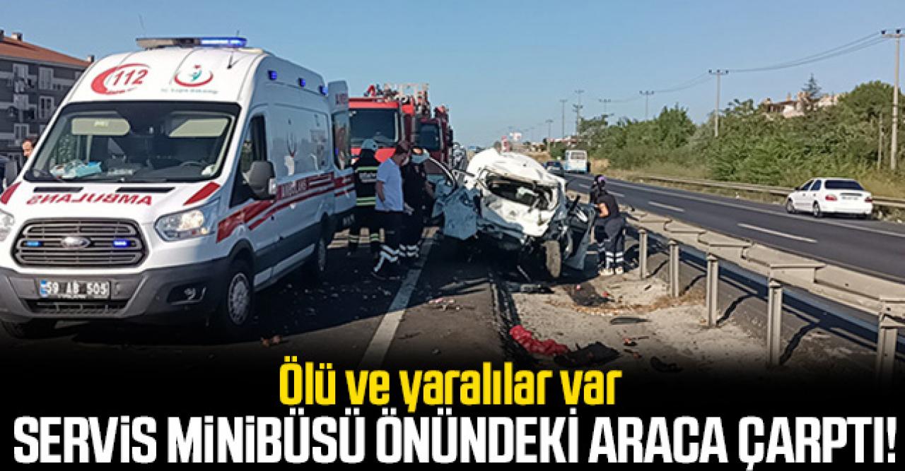 Kaza, saat 08.00 sıralarında Tekirdağ- İstanbul karayolu Kamara Dere mevkisinde meydana geldi. Fabrika işçilerini taşıyan Bülent Dikerler (50) yönetimindeki 59 J 3072 plakalı servis minibüsü, aynı yöne giden Nursel Yeşildağ (60) yönetimindeki 34 ZS 6704 plakalı otomobile arkadan çarptı. Çarpmanın etkisiyle savrulan otomobil refüje savruldu.