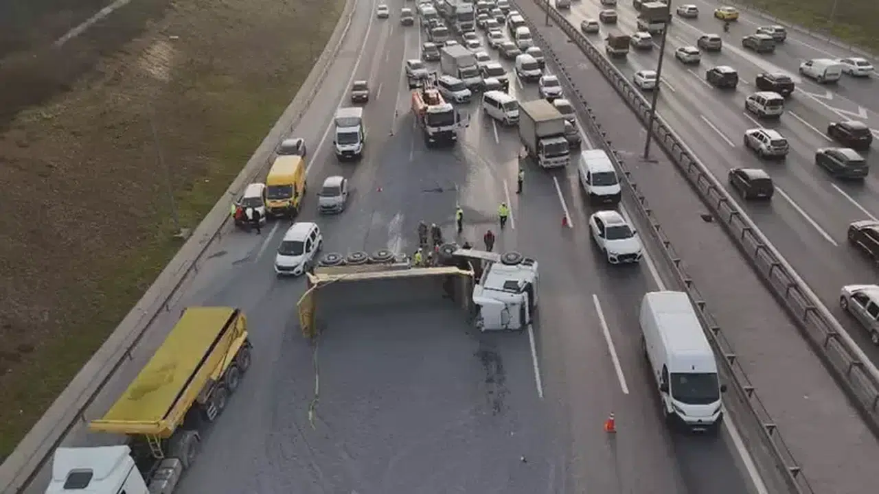 Yetkililerin olay yerindeki çalışmaları devam ederken, devrilen kamyonun kaldırılmasının ardından trafik akışının normale dönmesi bekleniyor.