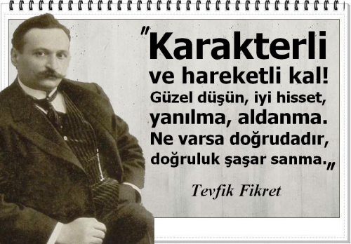 Osmanlı İmparatorluğu'nun dağılma sürecinde yetişti. Servet-i Fünûn topluluğunun lideri olan Tevfik Fikret, devrimci ve idealist fikirleriyle Mustafa Kemal başta olmak üzere dönemin pek çok aydınını etkiledi. Türk edebiyatının Batılılaşmasında öne çıkan isimlerden biridir.
