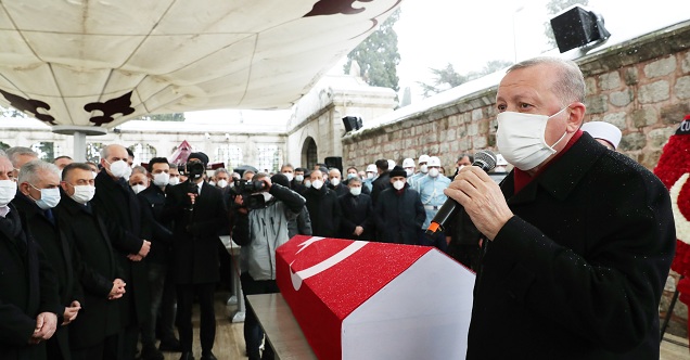 Cumhurbaşkanı Erdoğan, Kadir Topbaş için düzenlenen cenaze namazı sonrası açıklamalarda bulundu. "Değerli kardeşimiz değerli büyüğümüz Kadir Topbaş beye bizim tabi yol arkadaşlığımız hemen şuracıkta Çarşamba’da İstanbul İmam Hatip Okulu’nda başladı" diyen Erdoğan, "Tabi İmam Hatip okuluna girdiğimiz de Kadir abimiz bizim 4-5 sınıf önümüzdeydi. Ve orada başlayan yol arkadaşlığımız daha sonra davada da beraber sürdü. İstanbul’da Beyoğlu belediye başkanlığı ardından İstanbul Belediye başkanlığı böyle süren yol arkadaşlığımız devam etti. Rabbimden geldik tekrar rabbimize döneceğiz. Bundan kaçış yok. Şu anda hizmetinde bulunduğu İstanbul’da Fatih Cami’nin avlusunda uğurluyoruz inşallah hakka. Birazdan da Fatih Cami’nin haziresine defnedeceğiz. Orada da çok değerli arkadaşları olacak o arkadaşları ile beraber de inşallah rabbim sancağı altından buluşturur. Koronavirüs belası bir çok yol arkadaşlarımız bizden ayrıldı, ayrılıyor ve büyük bir mücadele bu süreçte verildi veriliyor. Şu anda hasta yatağında medet bekleyenler var rabbim inşallah onlara da yardımcı olsun. Allah yar ve yardımcımız olsun" ifadelerini kullandı.