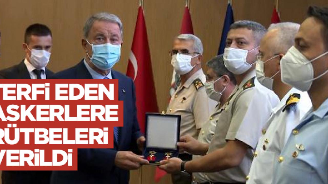 Türk Silahlı Kuvvetleri’nde terfi eden personele yeni rütbeleri Milli Savunma Bakanı Hulusi Akar ve TSK komuta kademesinin katıldığı törenle verildi.