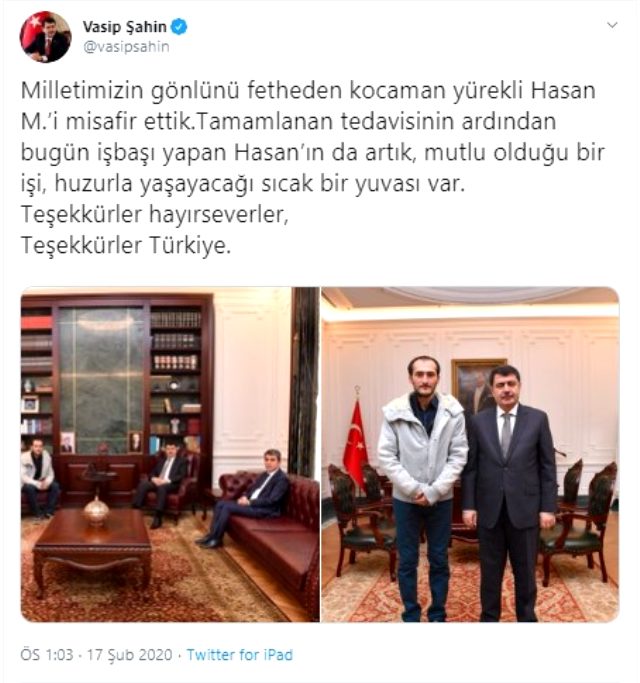 Ankara Valisi Vasip Şahin, resmi sosyal medya hesabından Hasan'ın son halini paylaştı. İşte o paylaşım ve Hasan'ın son halleri: