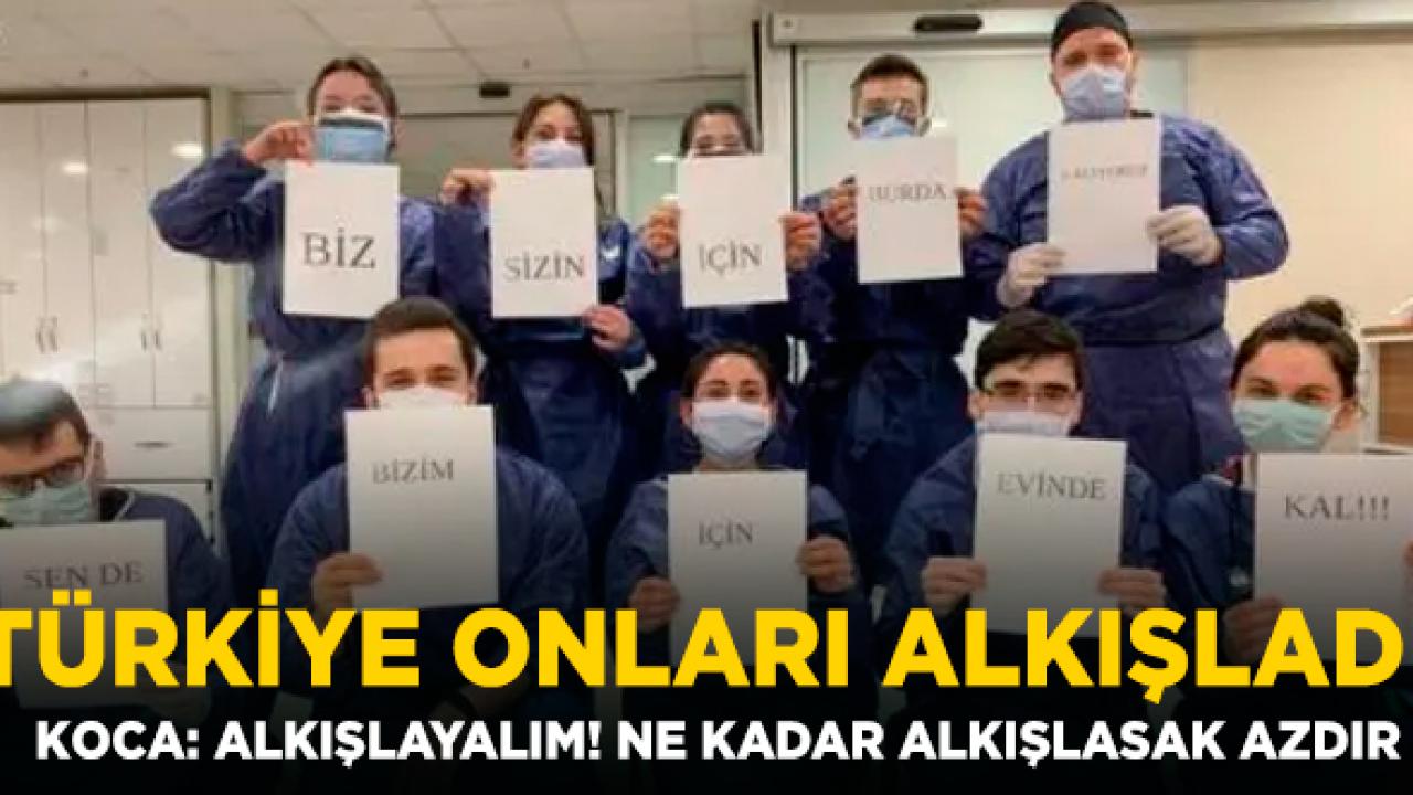 Tüm Türkiye saat 21'de balkonlarına çıkarak sağlık çalışanları için alkış tuttu. Sağlık Bakanı Fahrettin Koca, bugün yaptığı konuşmada şu ifadeleri kullanmış ve herkesi bu eyleme davet etmişti.