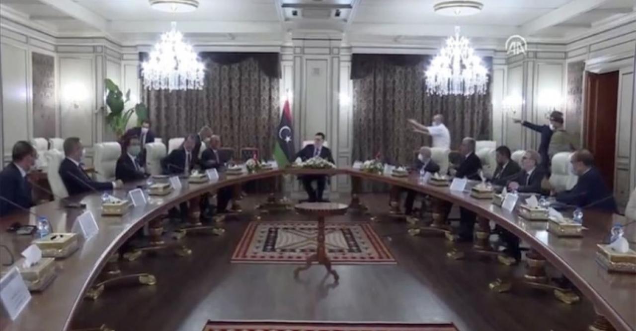 Libya’nın başkenti Trablus’ta Türk heyet, Libya hükümeti ile görüştü. Heyette, Dışişleri Bakanı Mevlüt Çavuşoğlu, Hazine ve Maliye Bakanı Berat Albayrak, Cumhurbaşkanlığı Sözcüsü İbrahim Kalın ve MİT Başkanı Hakan Fidan yer aldı.