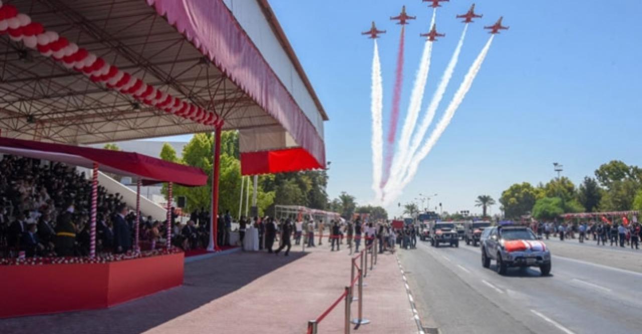 Türk Yıldızları Akrobasi Timi ve F-16 uçakları, Kuzey Kıbrıs Türk Cumhuriyeti'nde (KKTC) düzenlenen Barış ve Özgürlük Bayramı kutlamaları kapsamında selamlama geçişi yaptı.