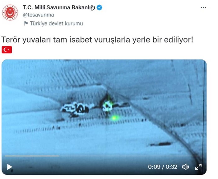 Bakanlık, “Terör yuvaları tam isabet vuruşlarla yerle bir ediliyor” ifadelerine yer verdi.