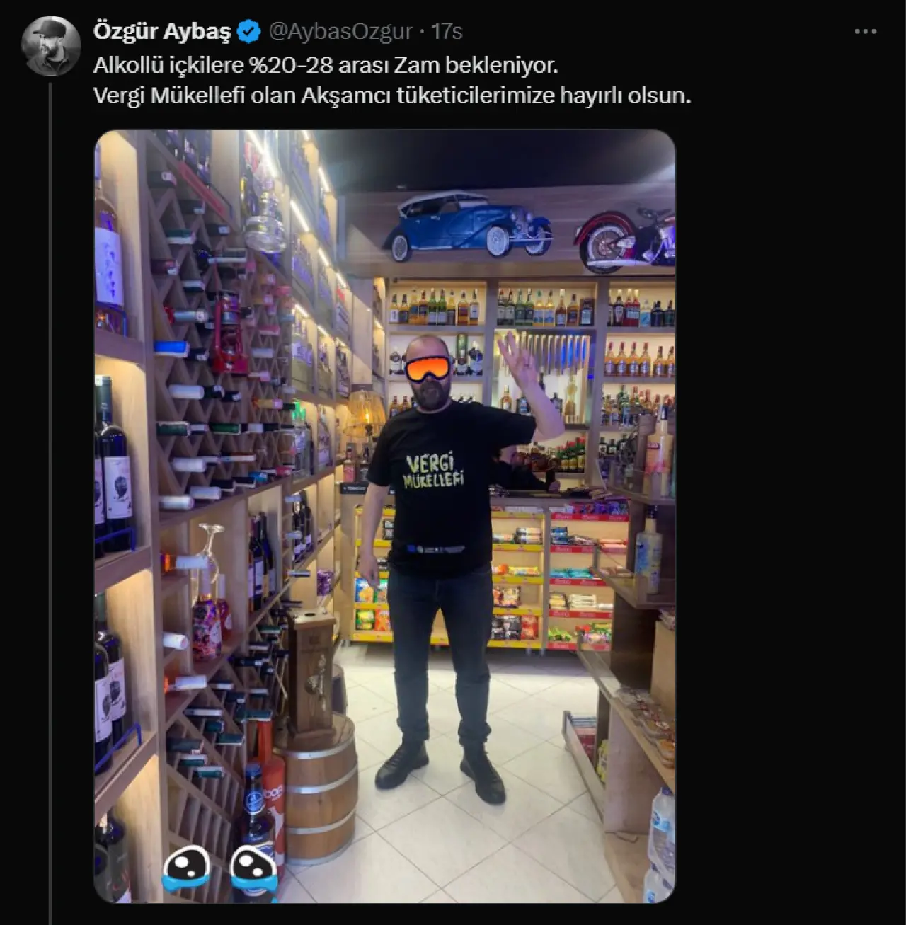 Özgür Aybaş, sosyal medya hesabından yaptığı açıklamada alkollü içkilere yüzde 20 ile 28 arasında bir zamın gündemde olduğunu belirtti. Vergi mükellefi olan akşamcı tüketicilere yapılan bu zamın detayları hakkında açıklamalarda bulundu.