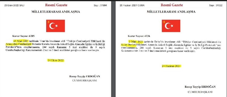 Türkiye ile Arnavutluk arasında “Askeri Sağlık Alanında Eğitim ve İşbirliği” Protokolü Erdoğan tarafından onaylandı.