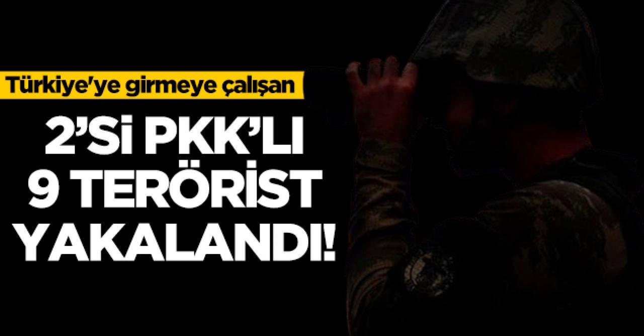 Milli Savunma Bakanlığı yaptığı açıklamada yasa dışı yolla Türkiye'ye girmek isteyen 2'si PKK'lı 9 teröristin yakalandığını duyurdu.