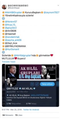 “Hepsi benzer isimlerle aynı gün yaratılmış çok sayıda sahte kişi bulduk. Aynı zamanda bir dizi AKP yanlısı retweet ağı gözlemledik;