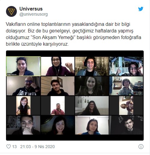 Universus Sosyal Araştırmalar Merkezi ise yaptığı Twitter paylaşımıyla kararı tanımayacağını söyledi ve etkinlik duyurularına devam etti.