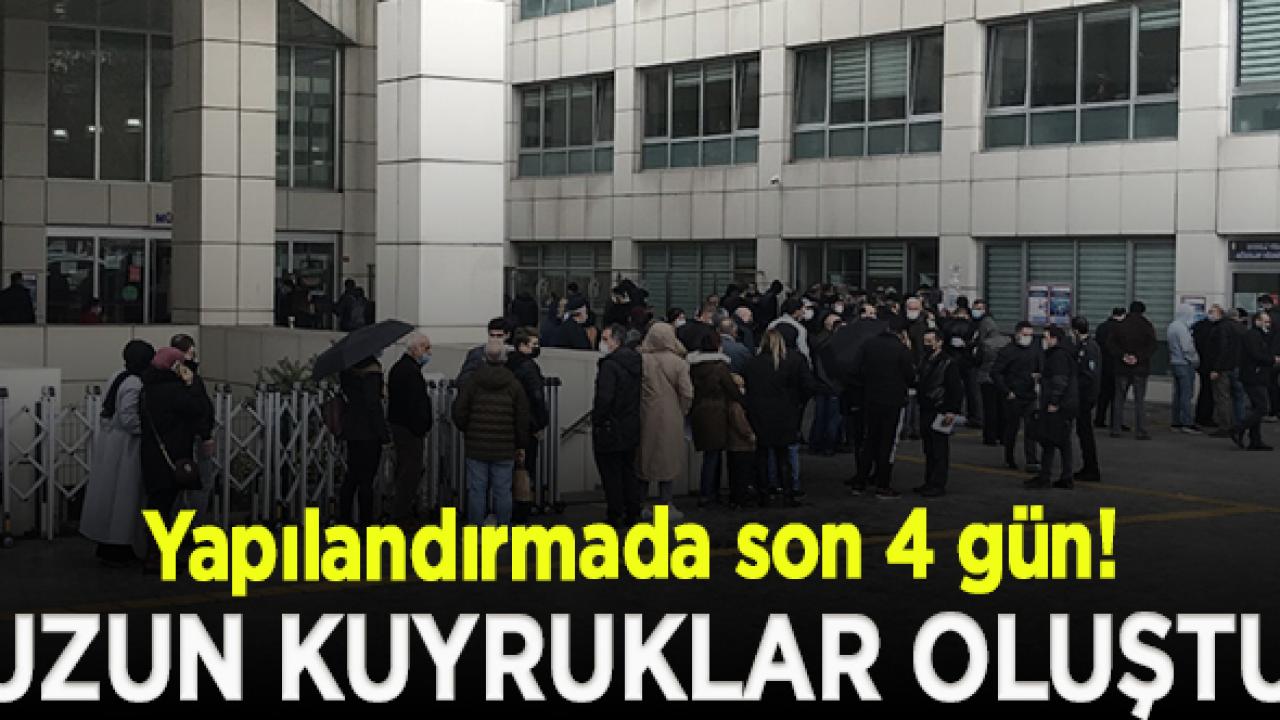İstanbul'da Fatih'te bulunan Vergi Dairesi önünde vergi borçlarını yapılandırmak isteyenlerin yoğunluğu yaşandı. Yapılandırmanın son bulacağı 31 Aralık öncesinde, işlemlerimi tamamlamaya çalışan vatandaşların sabah ve öğlen tatili sonrasında metrelerce kuyruk oluşturduğu görüldü.