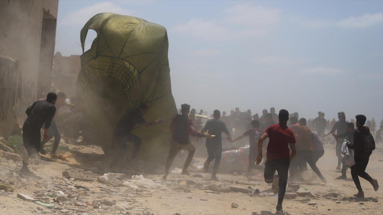 Gazze'deki Sivil Savunma Birimi Sözcüsü Mahmud Basal, yayımladığı yazılı açıklamada, Gazze Şeridi'nin kuzeyine yardım taşıyan uçakların havadan indirdiği insani yardım kutularını taşıyan paraşütlerin açılmadığını belirtti.