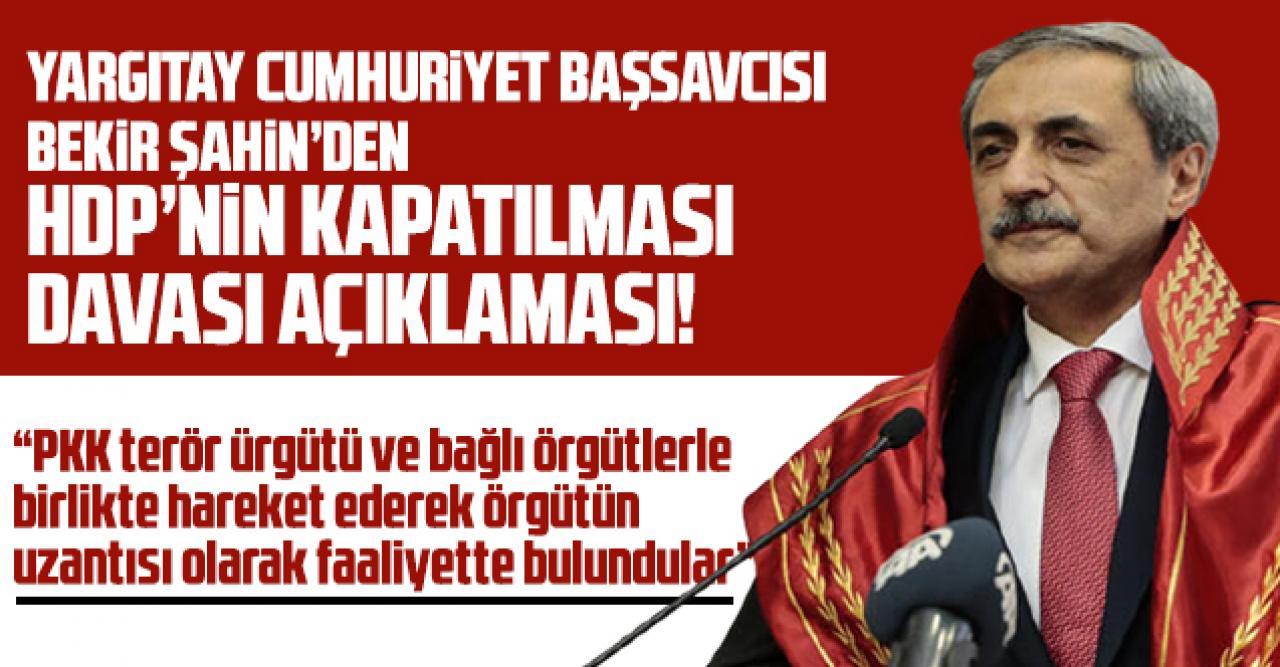 HDP'nin kapatılması istemiyle AYM'ye kapatma davası açan Yargıtay Cumhuriyet Başsavcısı Bekir Şahin, yazılı bir açıklama yaptı. Açıklamasında siyasi partilerin, demokratik siyasi hayatın vazgeçilmez unsurlarından birisi ve toplumun ekonomik ve sosyal gelişimine katkı sunmayı amaçlayan kurumlar olduğunu söyleyerek, "Bu amaçlarını evrensel ve demokratik hukuk kuralları çerçevesinde barışçıl yollarla gerçekleştirmeleri esastır. Bununla birlikte anayasanın 68/3'üncü fıkrasında ve Siyasi Partiler Yasası'nın 90'ıncı maddesinde, siyasi partilerin faaliyetlerini anayasa ve kanun hükümleri çerçevesinde sürdürmeleri gerektiği, yine anayasanın 14'üncü maddesinde, temel hak ve hürriyetlerden hiçbirinin, devletin ülkesi ve milletiyle bölünmez bütünlüğünü bozmayı ve ortadan kaldırmayı amaçlayan faaliyetler biçiminde kullanılamayacağı düzenlenmiştir" dedi.