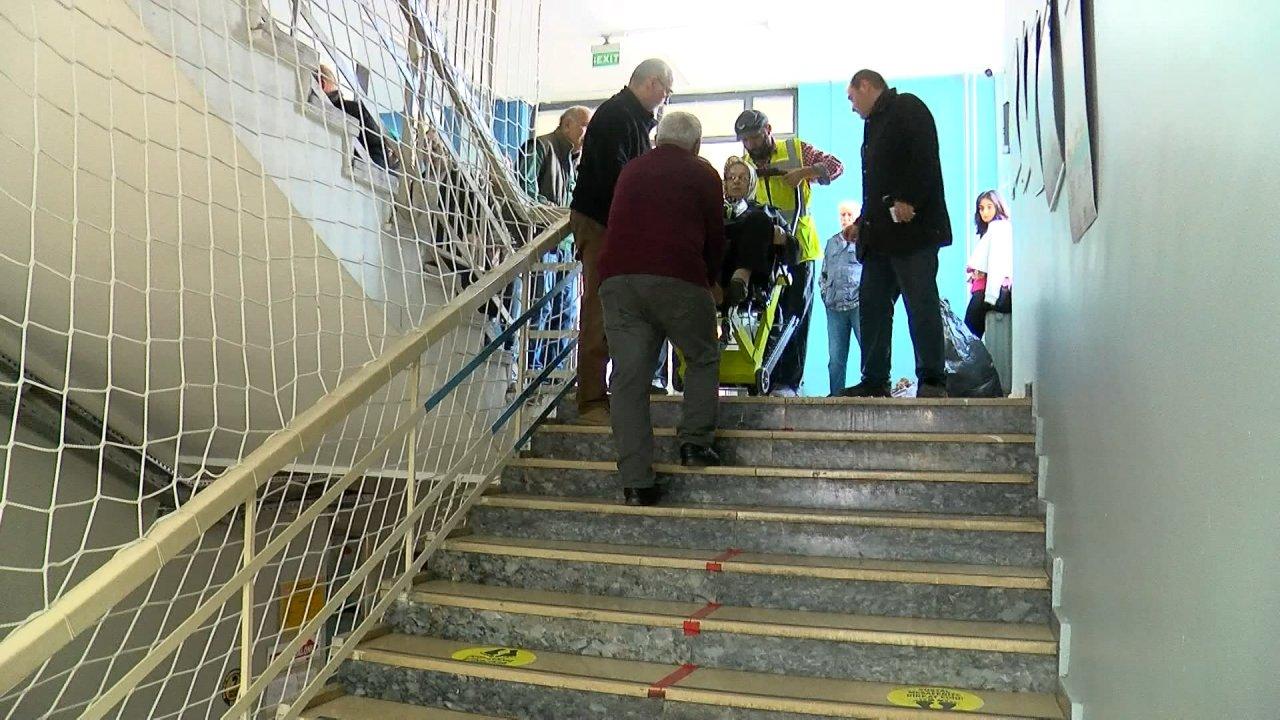 Sabah erken saatlerinden itibaren oylarını kullanmak için okullara gelen engelli ve yaşlılar merdivenleri güçlükle çıkarak oylarını kullandı.