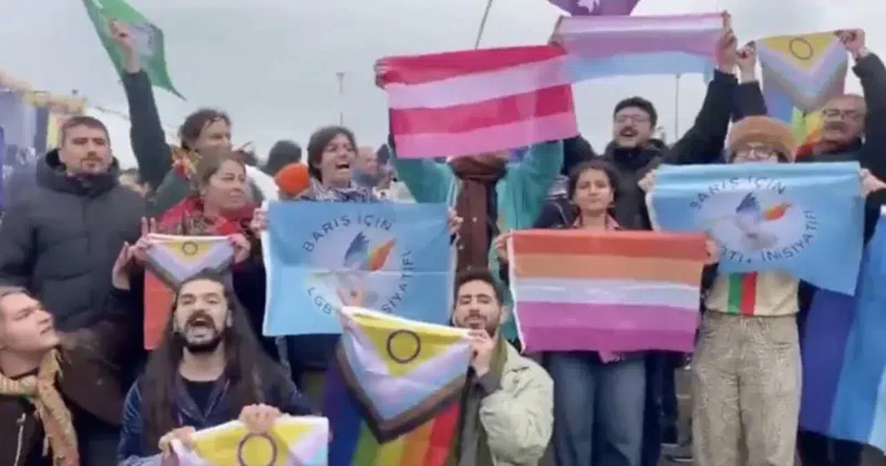 Kutlamalar sırasında alanda bulunan bir grup, slogan attı ve çeşitli renkler ile semboller içeren bayraklar açtı. Söz konusu grubun attığı sloganlar ve taşıdığı bayraklar, etkinlik alanında dikkat çeken anlar arasında yer aldı.
