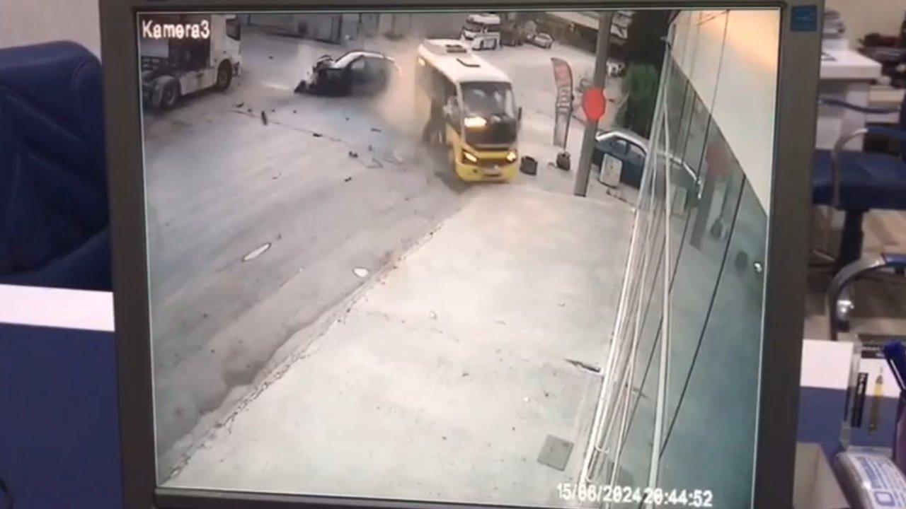 Kazada 2 ara sürücüsü ile minibüste bulunan 8 yolcu yaralandı. Kaza anı çevredeki bir işyerinin güvenlik kamerası tarafından kaydedildi.