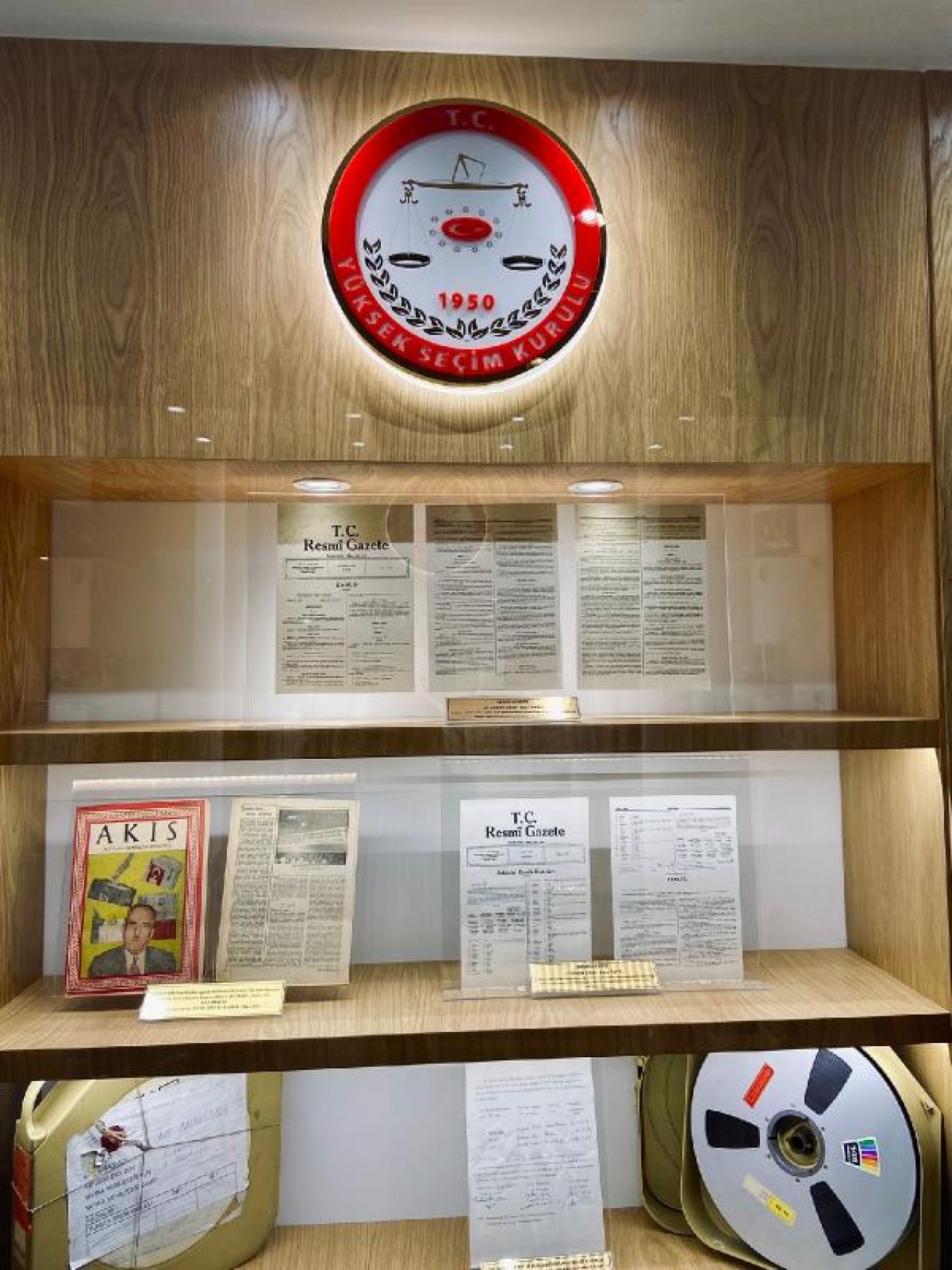 YSK'nın giriş katında bulunan müzede, Türkiye'nin seçim tarihine ilişkin pek çok eşya bulunuyor. Müzede; Ulu Önder Mustafa Kemal Atatürk'ün 1935 seçimlerinde aldığı milletvekilliği mazbatası, Türkiye'nin ilk siyasi haber dergilerinden biri olan Akis dergisinin seçim özel sayıları ve CHP Genel Başkanı İsmet İnönü'nün oy kullandığı sırada çekilen fotoğrafı yer alıyor. Türk siyasi tarihinde önemli rol oynayan siyasi parti liderlerinin oy kullanırken basına yansıyan fotoğrafları da burada sergileniyor. Ayrıca oy pusulalarının basımında kullanılan baskı kalıpları, seçmen veri takibi bilgisayarları, geçmişten günümüze kullanılan farklı seçim türlerine ait birleşik oy pusulaları gibi birçok eşya da müzede yer alıyor. Seçim tarihindeki değişimi gözler önüne seren müzeye, 14 Mayıs seçimlerinden sonra da görme engelli vatandaşların tek başlarına oy kullanabilmeleri için hazırlanacak şablonların ekleneceği belirtildi. (DHA)