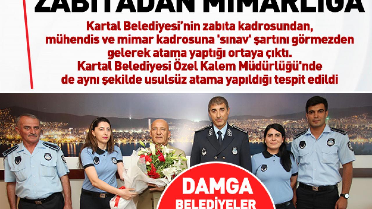 Kartal Belediyesi'nin zabıta memuru kadrosundan mühendis ve mimar kadrolarına atama yaptığı öğrenildi. İlgili kadrolara yapılacak atamalarda sınav zorunluluğu olduğunu belirten Sayıştay, hukuksuz atamaların iptalini istedi. Belediyeden yapılan açıklamada ise atama işleminin 2000 ve 2001 yılları arasında yapıldığı belirtilerek, o dönemde bu durumun olağan olduğu savunuldu. Belediyenin cevabını yeterli bulmayan Sayıştay, sınav yapılması gerektiğini yineleyerek, atamaların mevzuata aykırı yapıldığına hükmetti.