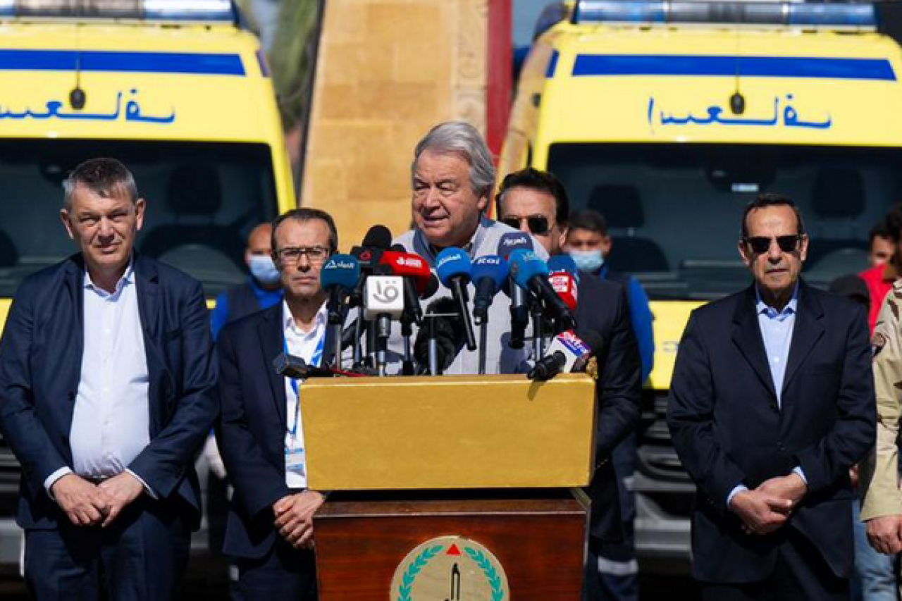 Guterres, Mısır tarafındaki Refah'ta BM insani çalışanlarıyla bir araya gelerek, çatışmanın ortasında kalanların acısını hafifletme stratejilerini tartıştı.