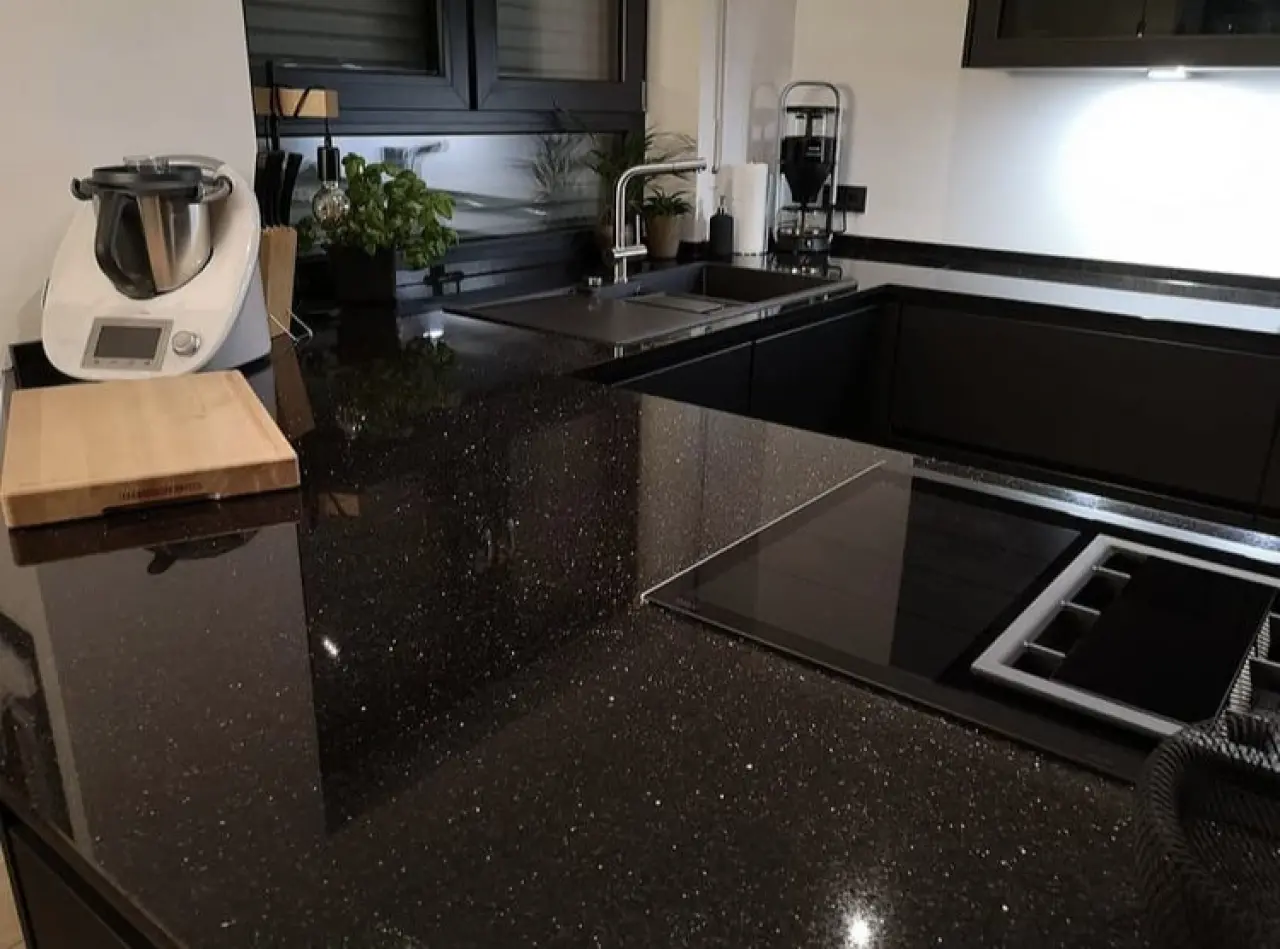 Black Galaxy | 3.500 TL- 5.000 TL | Koyu renkli, üzerinde altın veya gümüş pırıltılar olan doğal granit. | Çok şık ve lüks bir görünüm, çizilme ve ısıya karşı yüksek direnç. | Fiyatı yüksek olabilir, deseni her zevke hitap etmeyebilir. |