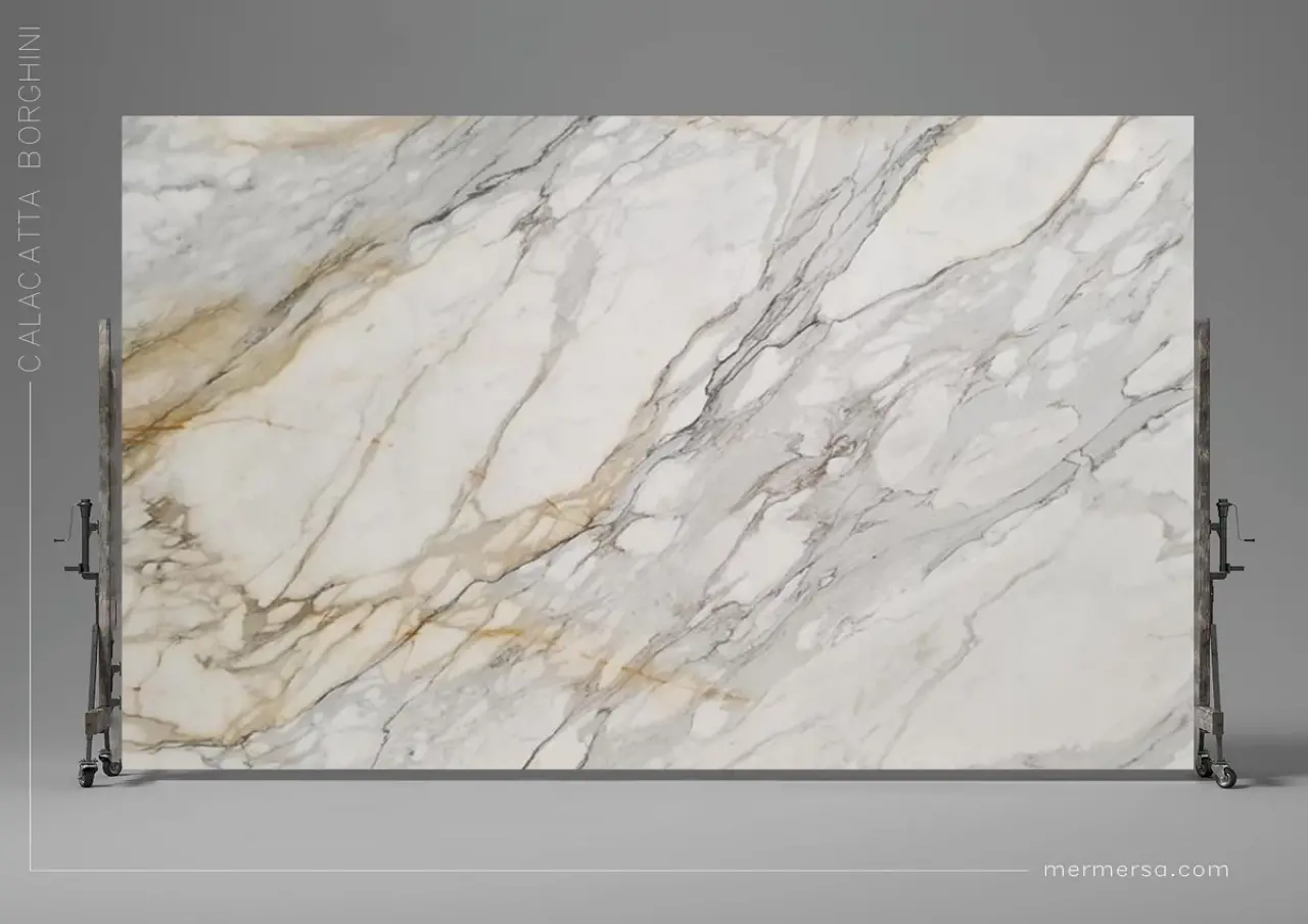 Calacatta Mermeri | 5.000 TL- 8.000 TL | Kalın ve belirgin damarlarıyla Carrara'dan ayrılan, nadir bulunan bir mermer. | Olağanüstü lüks ve sanat eseri gibi bir görünüm sunar. | En yüksek fiyat aralığında yer alır, bakımı çok zor. |