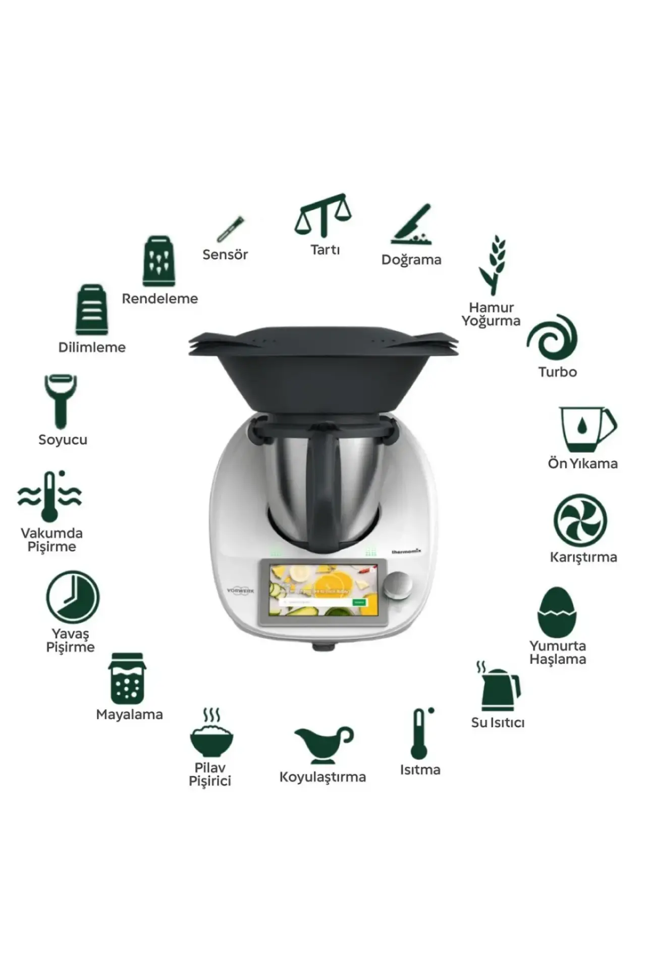 Thermomix doğrama, karıştırma, yoğurma, buharda pişirme, tartma, çırpma, öğütme, yoğurt yapma ve hatta yemek tariflerini adım adım takip etme gibi çok sayıda işlemi tek cihazda yapabilir.