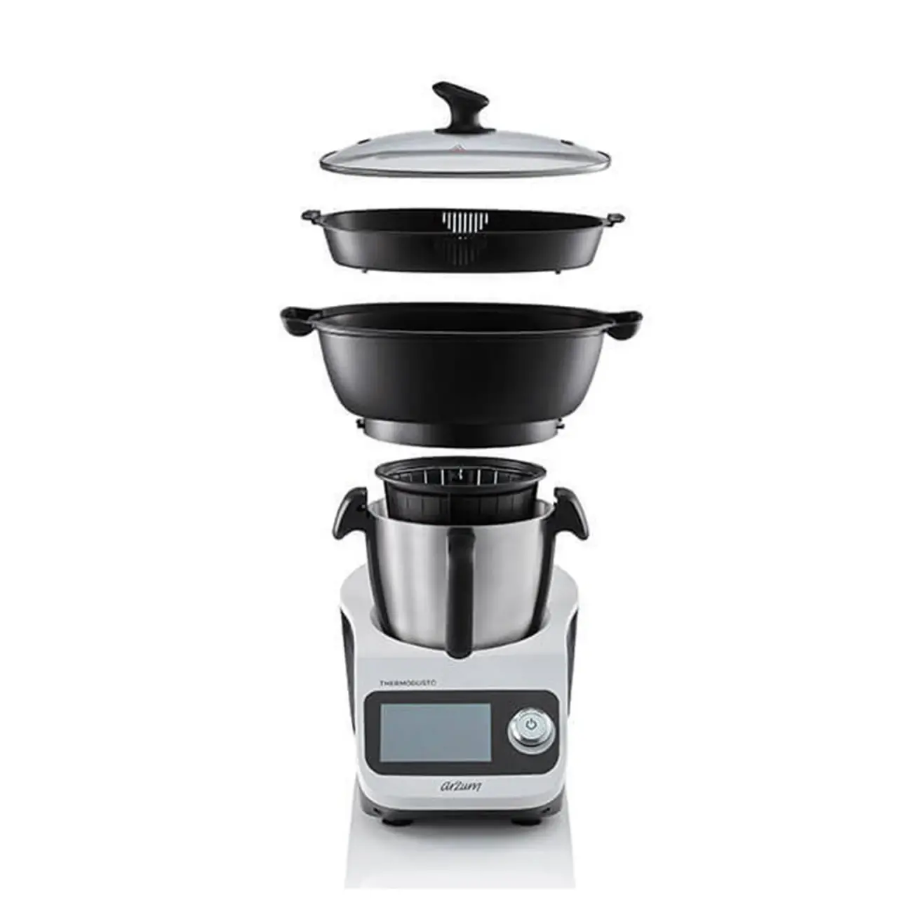 Arzum Thermogusto: 30.000 TL civarındaki fiyatıyla TM6’ya göre daha uygun ve Wi‑Fi bağlantısı sayesinde güncellenen tariflere erişim sağlıyor. 8 otomatik program ve 3,5 L paslanmaz hazne sunması ciddi bir artı. Ancak motor gücü Thermomix kadar yüksek değil.