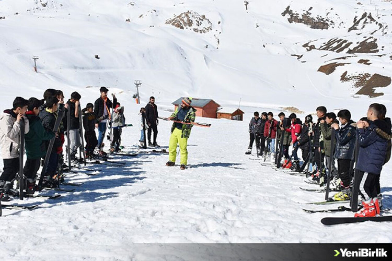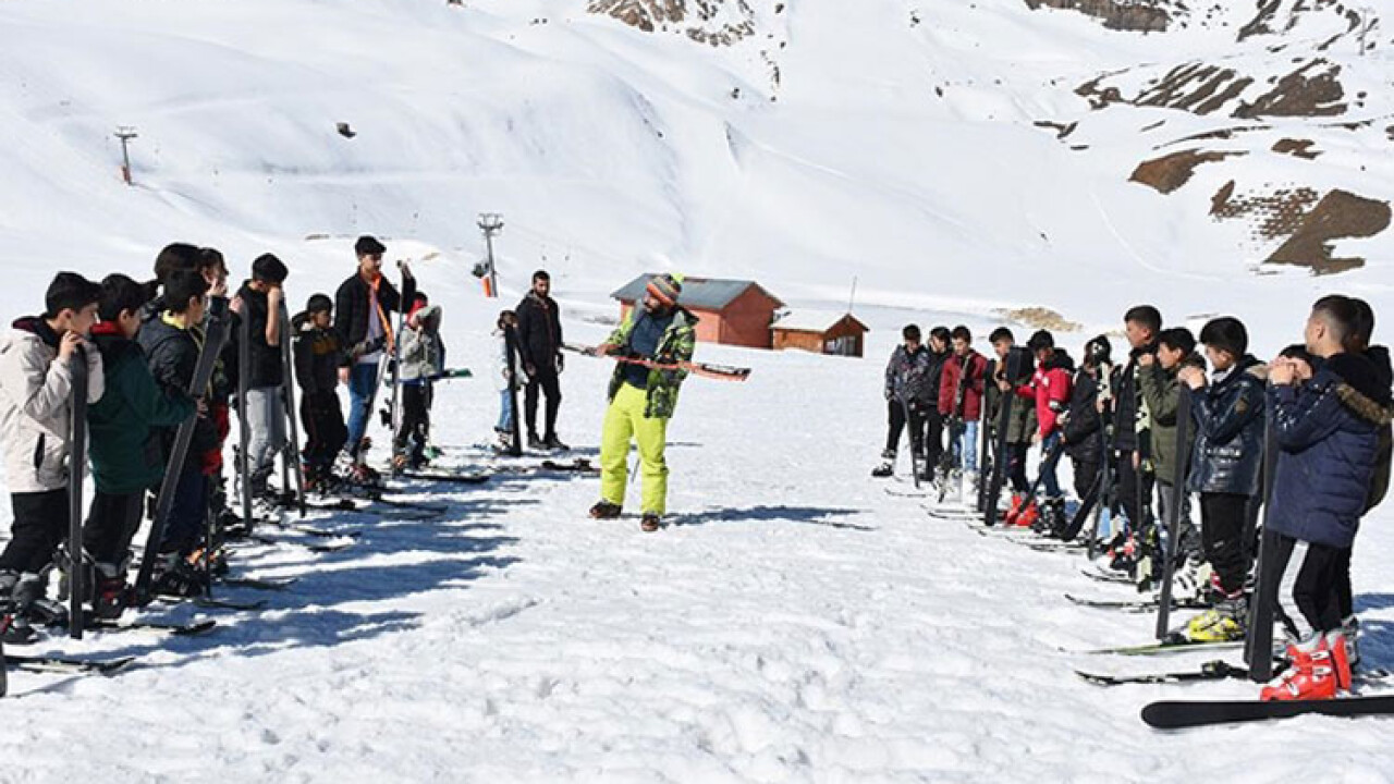 İl merkezi ile Yüksekova, Şemdinli, Çukurca ve Derecik ilçelerinde eğitim gören öğrenciler, belirli periyotlarla gruplar halinde 2 bin 800 rakımlı Merga Bütan Kayak Merkezi'ne götürüldü.