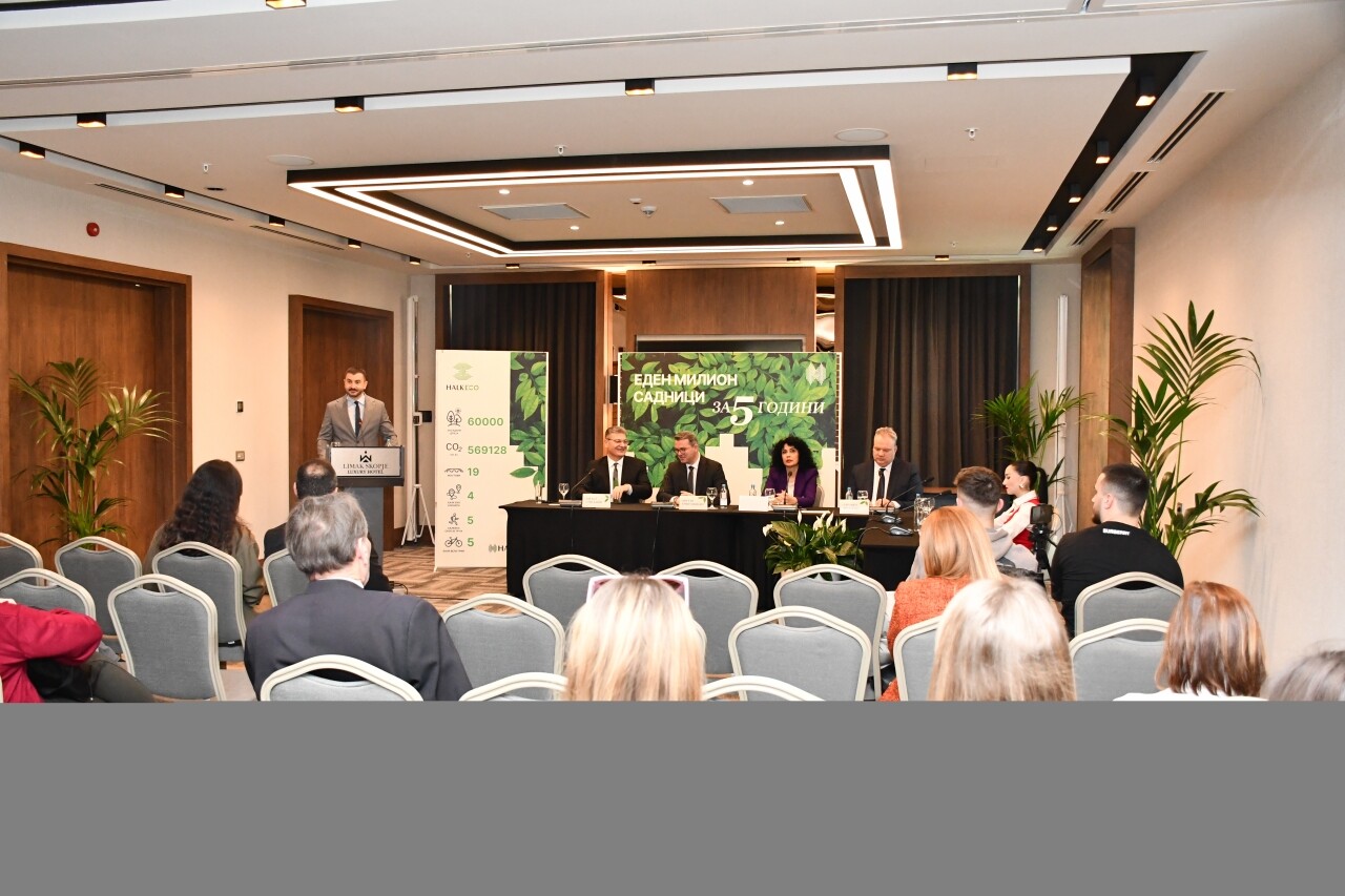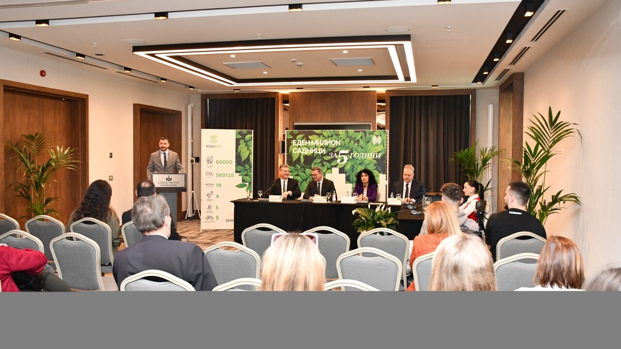 Kuzey Makedonya Tarım, Orman ve Su İdaresi Bakanı Cvetan Tripunovski, Çevre ve Alan Planlama Bakan Yardımcısı Ane Laşkoska, Halkbank Üsküp İcra Kurulu Başkanı Bilal Sucubaşı ve kamu kuruluşu "Makedonya Ormanları" Müdürü Zdravko Trayanov, başkent Üsküp'te "5 yılda 1 milyon fidan" projesinin tanıtımı dolayısıyla ortak basın toplantısı düzenledi.